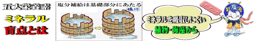 指導が出ていますが、ミネラルは、吸収されにくいという盲点があります。ミネラルは、鉱物ですから、イオン化(溶けて)