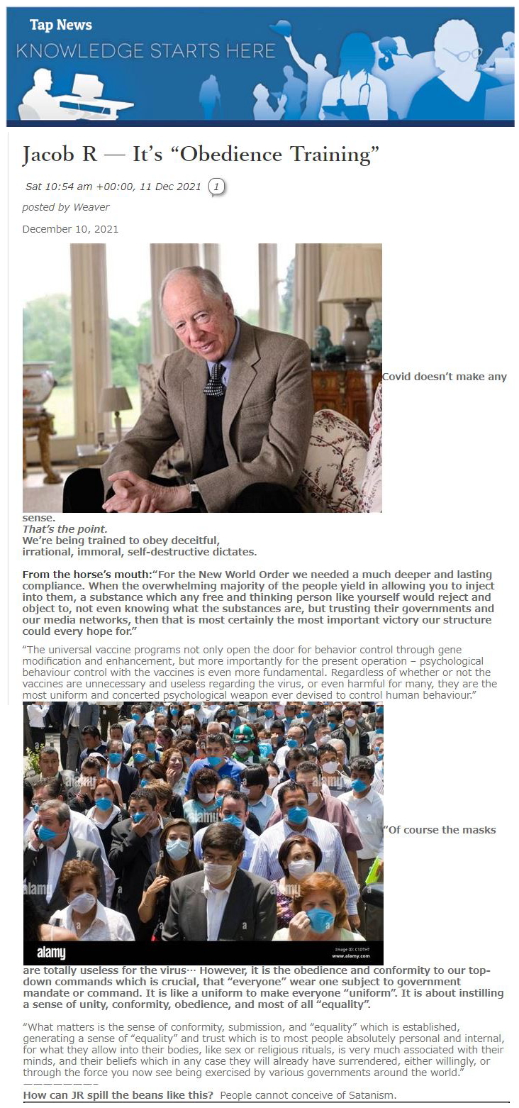 新世界秩序のために、あなた達は、もっと深くて永続的に従順であることが必要だ。